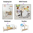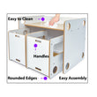 De Minerakids® kindertafel is meer dan alleen een speelbureau; je kunt ‘m ook gebruiken als opbergbox! Transformeer de tafel tot ruime kast door ‘m simpelweg om te draaien en gebruik de stoelen set als speelgoed lades. Hoe handig is dat!?