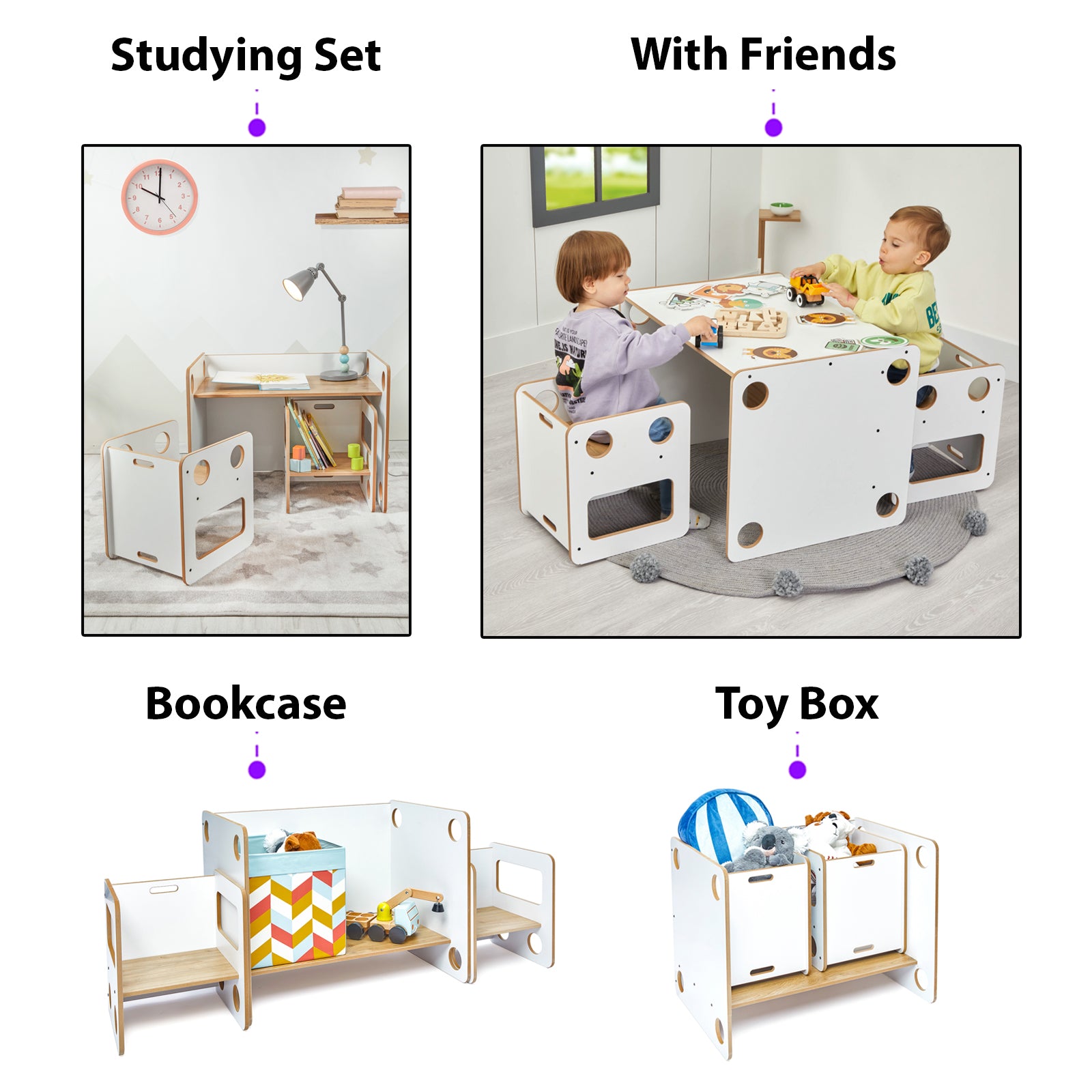 Minerakids® 0-6 jaar Goldfinch Montessori speel-, studie- en activiteitenset 1 tafel & 2 stoelen