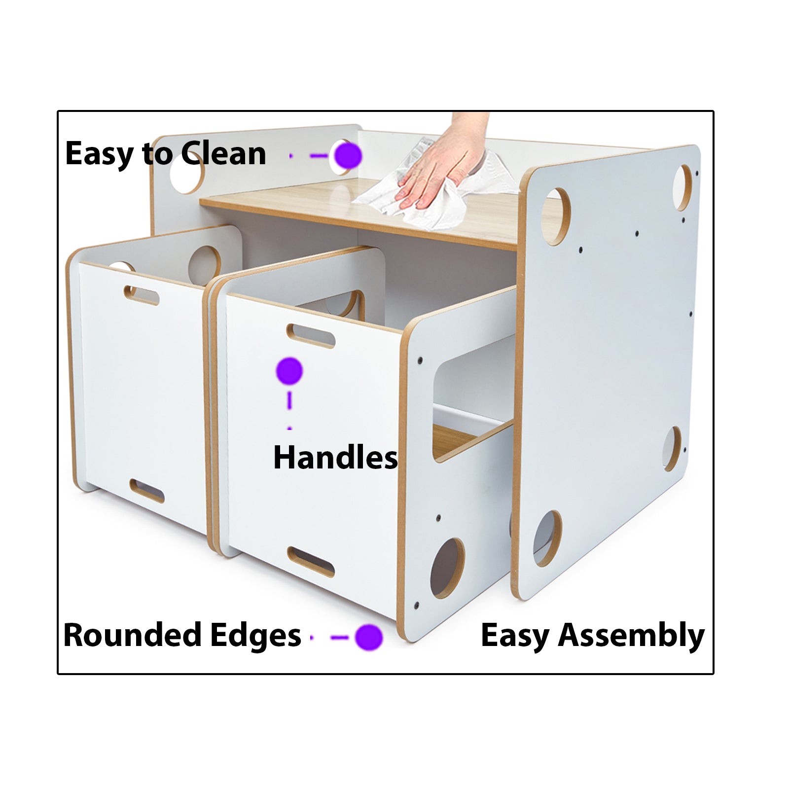 Jouw nieuwe kindertafel is volledig vrij van scherpe hoeken & chemische stoffen zodat de veiligheid van je kindje zo goed mogelijk beschermd wordt.